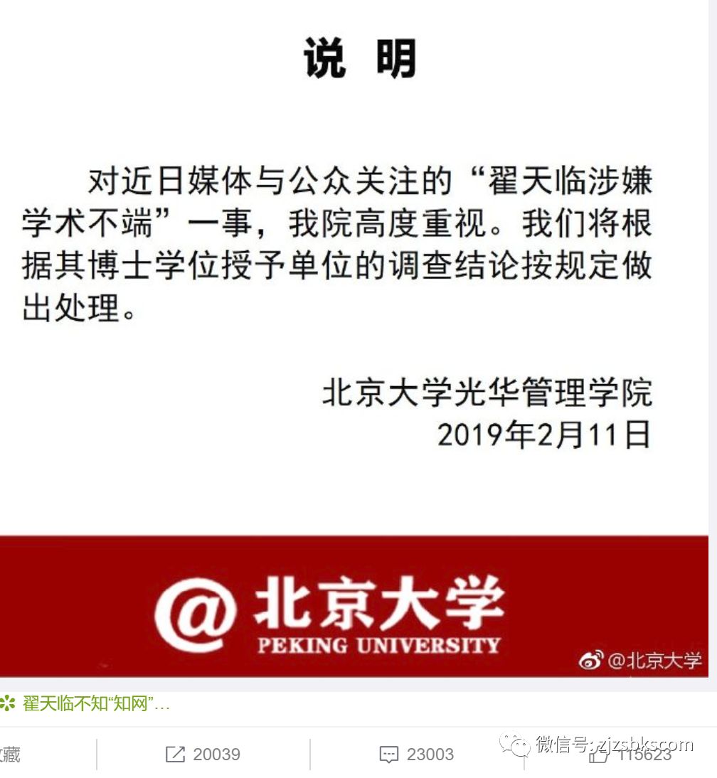 學校2月14日一說自己介入調(diào)查,翟博士就說自己放棄北大的入學資格。