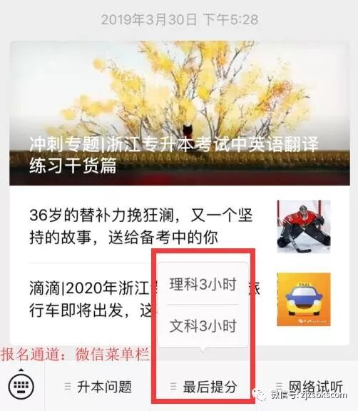 報(bào)名通道一:點(diǎn)擊微信公眾號(hào)zjzsbkscom菜單欄中間