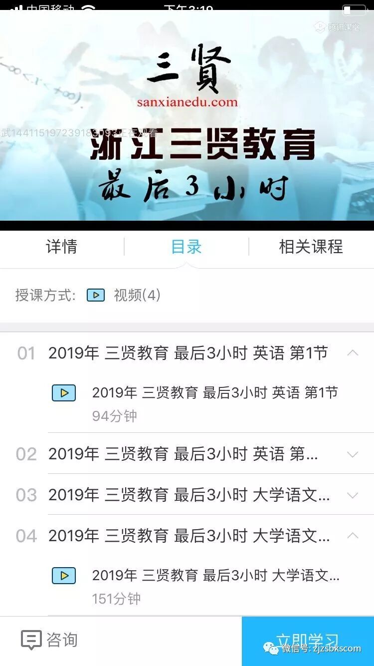 本次三賢教育2019年浙江專升本最后3小時已經(jīng)全部上傳完畢。